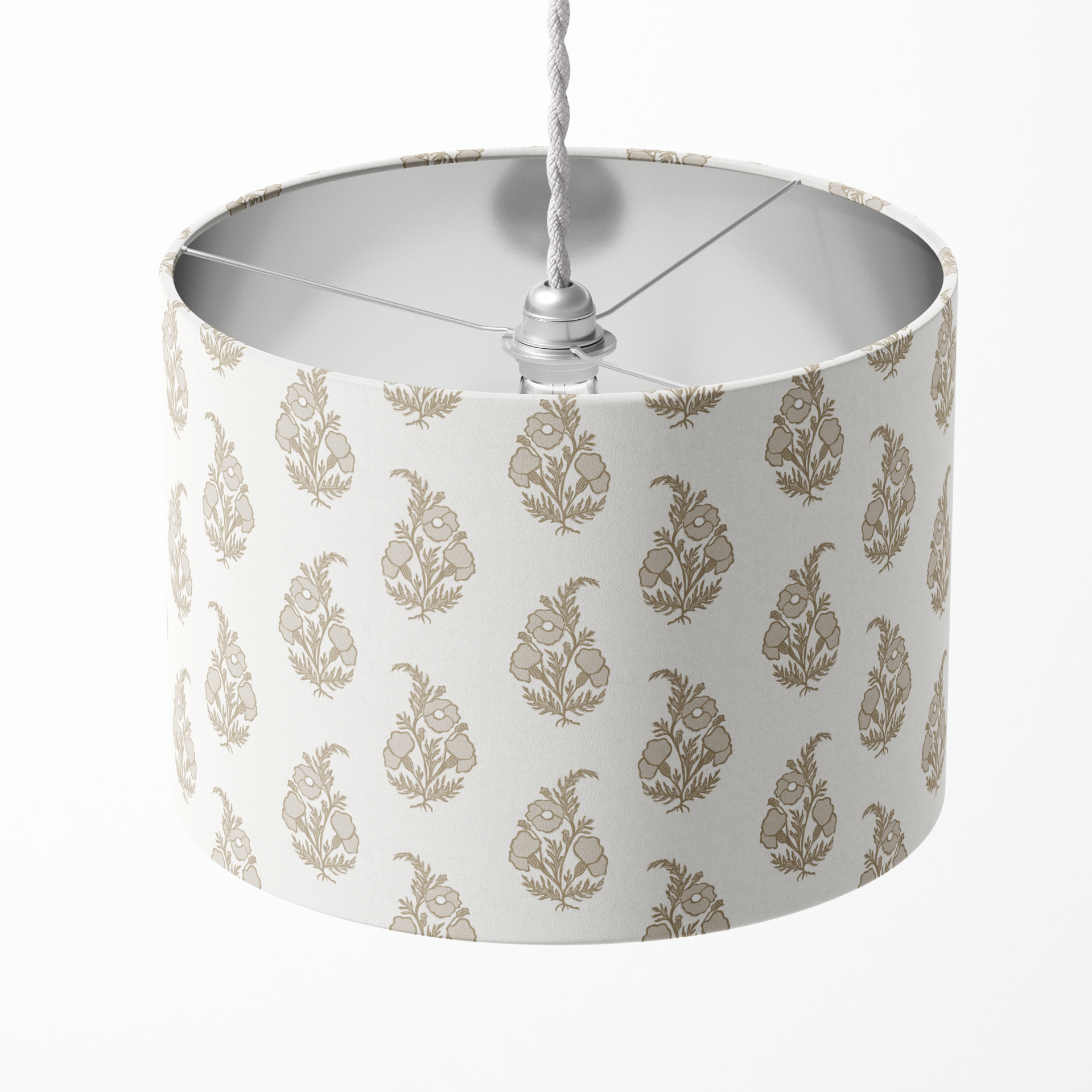 Enhance your home’s elegance with this velvet ceiling pendant featuring a stunning paisley block print motif in white and cream. This lampshade combines luxurious velvet texture with intricate paisley design, making it a perfect addition to any room. The Mughal Boteh motif was carefully carved and printed using traditional hand burnishing techniques before being digitised and reproduced on velvet. This makes for a perfect marriage of tradition and innovation that is HU:PU brand.